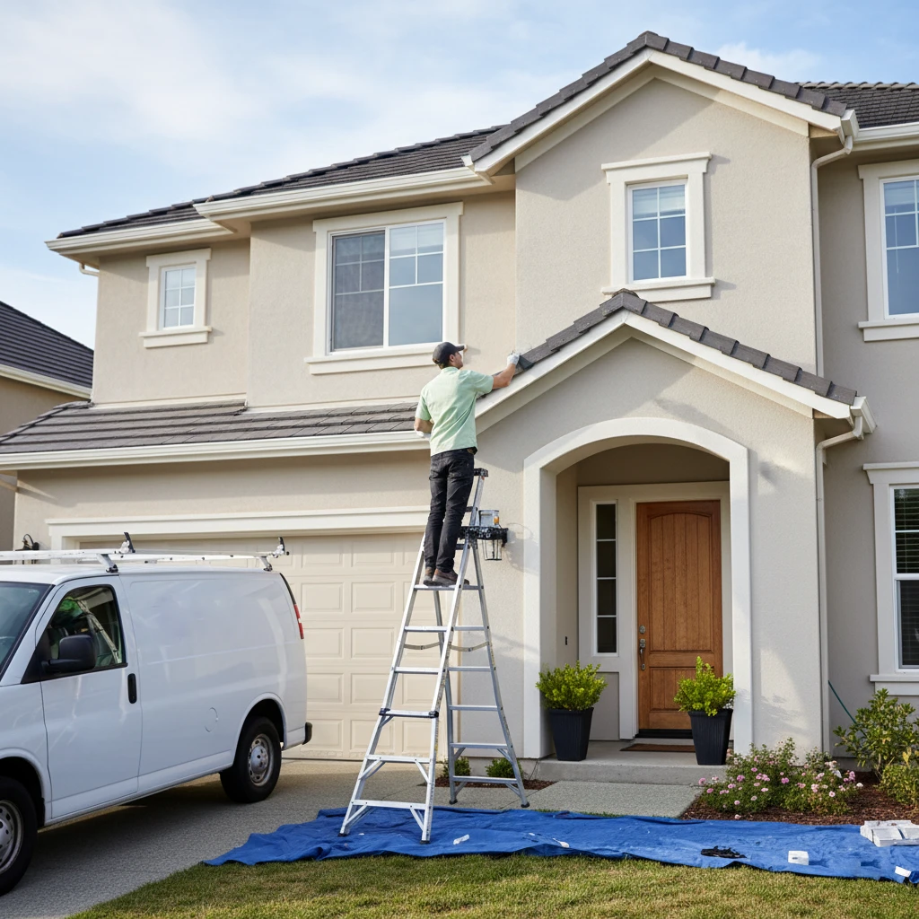 Renovation of aged surfaces through residential painting. Precise color selection and technical criteria to achieve a uniform, stable finish that complements the existing architecture. Transformation from the current state to a clean and defined final result.